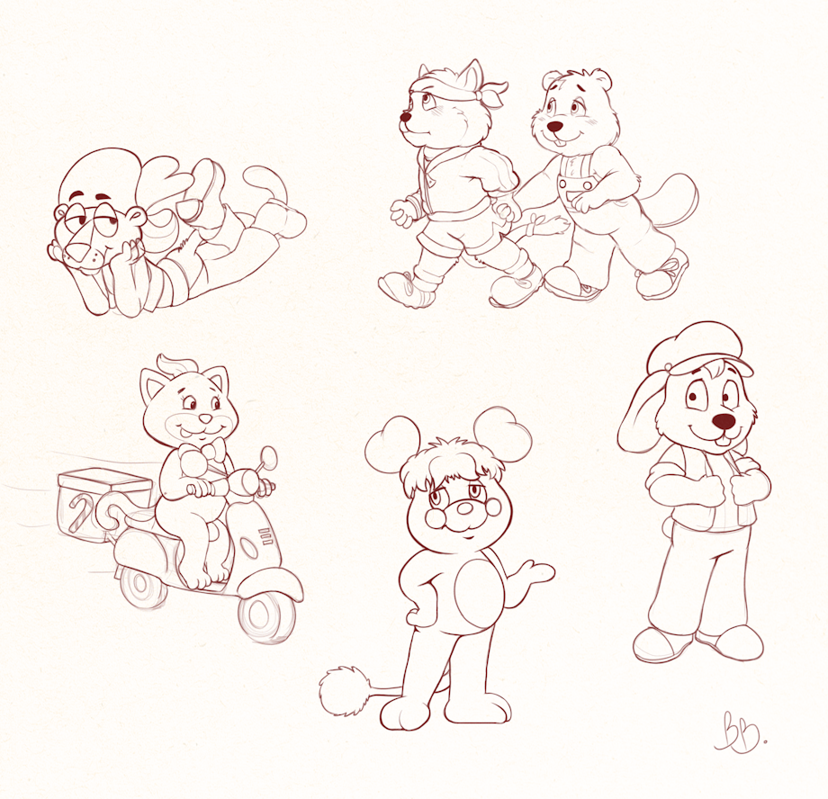 Might as well share some more sketches. Playing with some various styles, Nelvana Get Along Gang (Fursona Buckle Bunny), Popples (PC Popple), Yum Yums (Peppyment Kitty), DIC Get Along Gang (Zipper and Bingo), and modern Pink Panther.