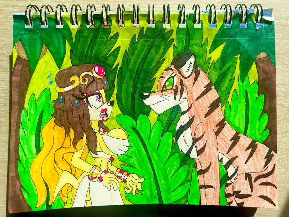 In this teaser part, a beautiful echidna name Cleo Le. ^^ She was lost in a jungle and searching for someone until she got encountered by a tiger who just standing there. She was frightened and didn’t know what to do.