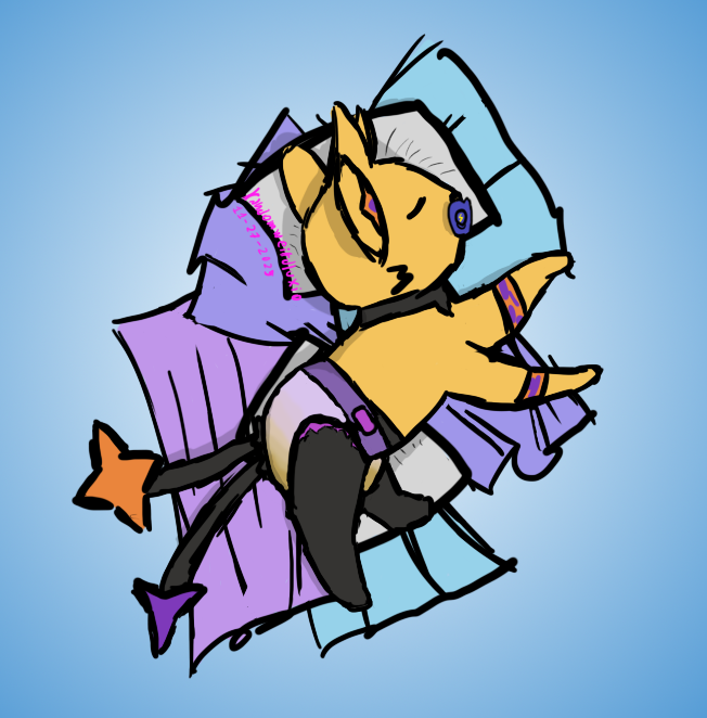 as the title says: am eepy, in a smallish pile of blankies and pillows :3