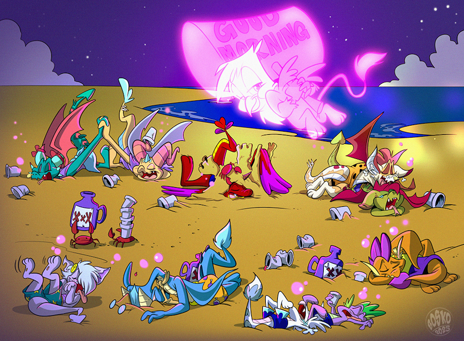 That kahuna dragon beach party was such a blast, course now it's time for Pink Griff to the wake-up call! 😂😉