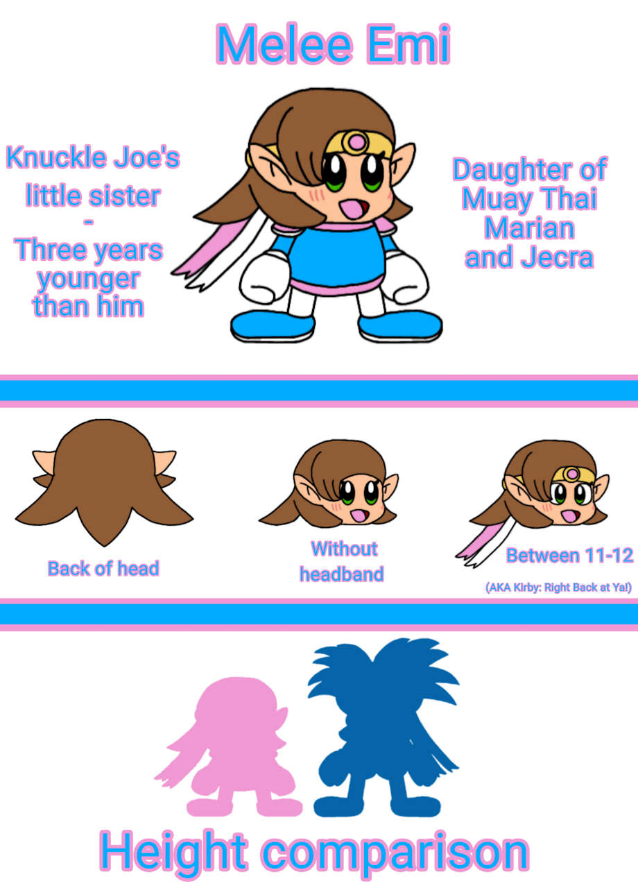 My new Kirby OC, meet Knuckle Joe's little sister and the daughter of Muay Thai Marian and Jecra, Melee Emi.
