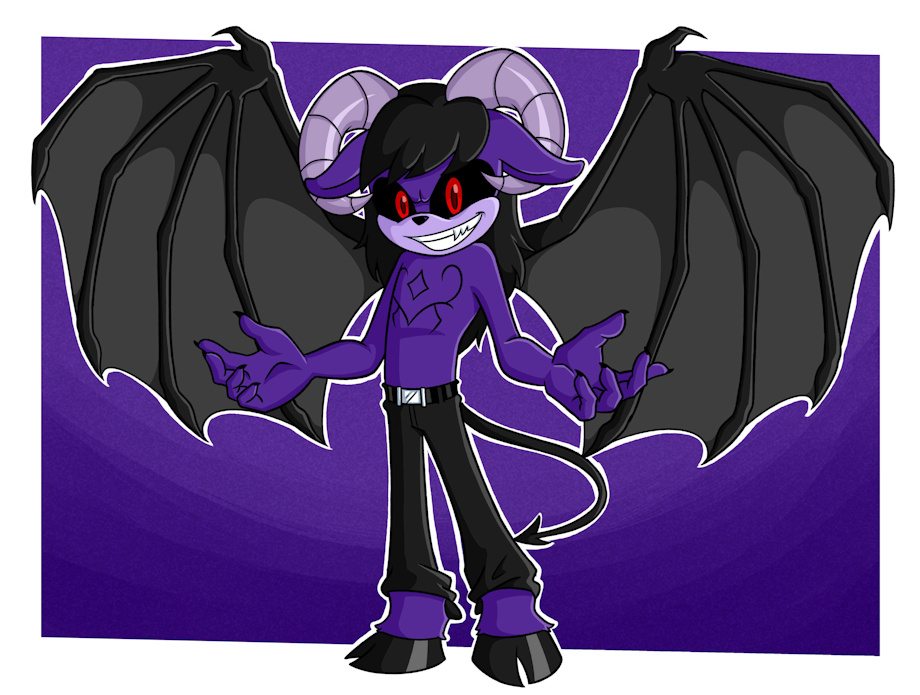 Cool design! The horns looping around underneath the ears is a nice touch. Gotta love that mischievo