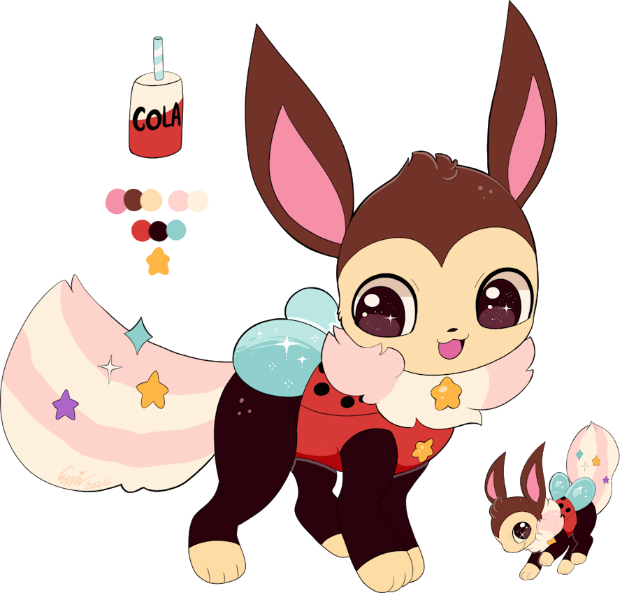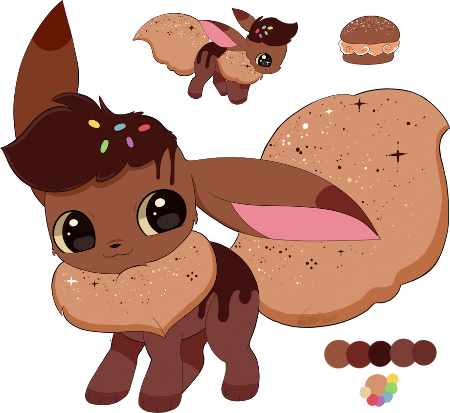 You threw a huge spectacular birthday party for your Eevee with the grandest chocolate mudcake they had ever seen. They enjoyed it so much that they have evolved into their cake themed form ♡ Congratulations!