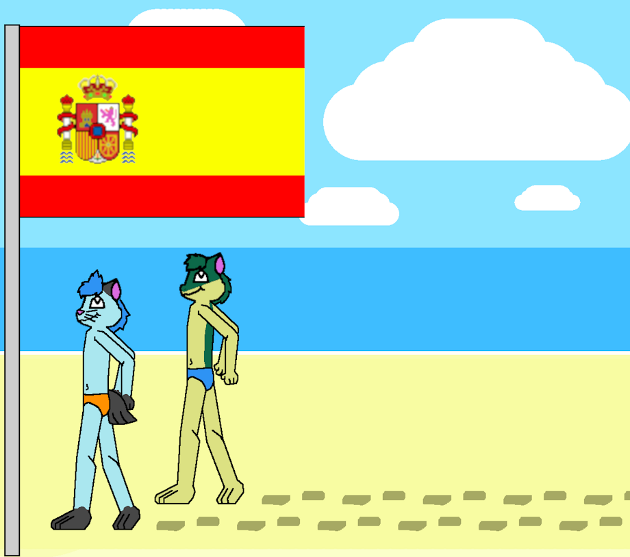 Bendt (left) and Edvin (right) are walking on a beach in Villajoyosa, Alicante, Spain. while they're visiting from Denmark.