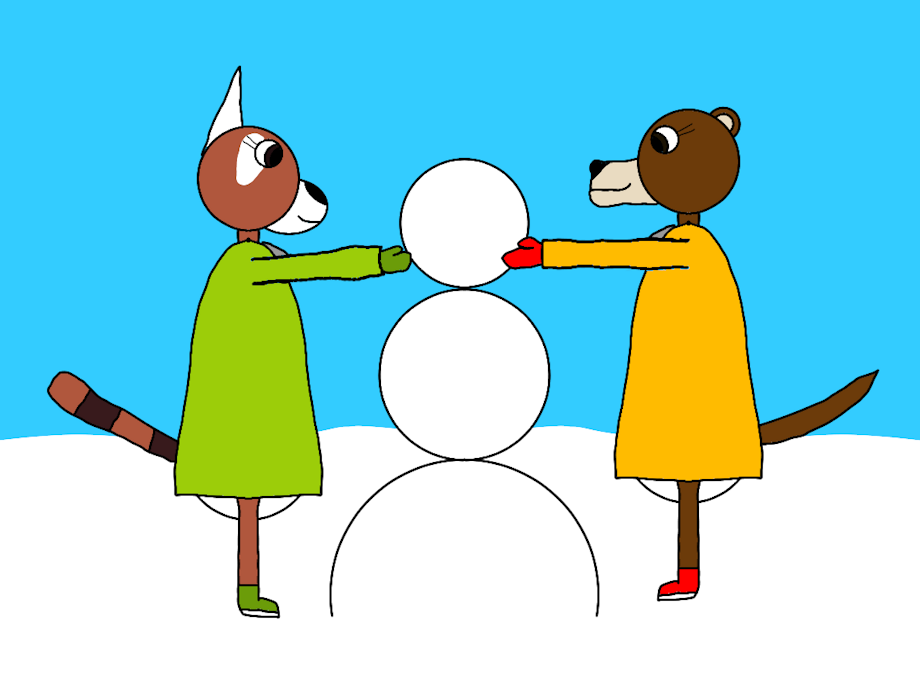 Its the first snow fall of the season and Ling Ling and Elise are building a snowman.