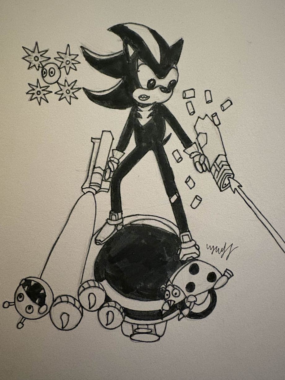I've been getting back into Sonic recently. I'm a huge fan of the series, and I plan on collecting the comics. I got the idea for this one after remembering that time they gave Shadow a gun - to appeal to edgy 10 year olds. I still find this idea amusing, but hearing the word "damn" so frequently does that to a person.
