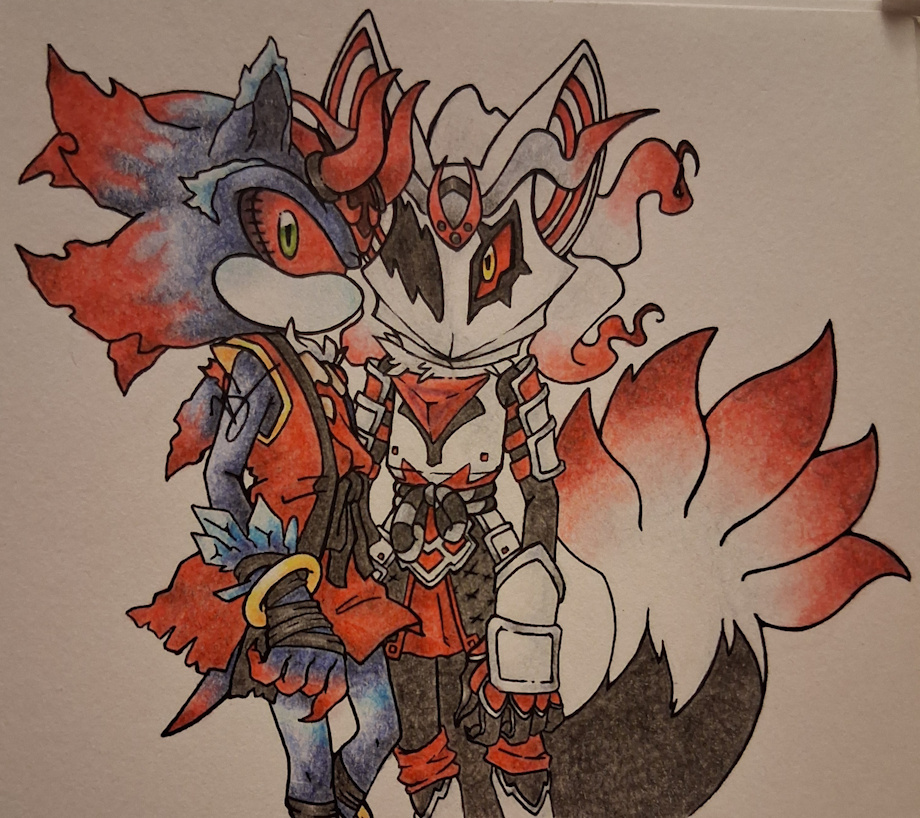 A Halloween piece I did this year. The designs are Sega Hardlight's Oni Mephiles and Cursed Samurai Infinite.