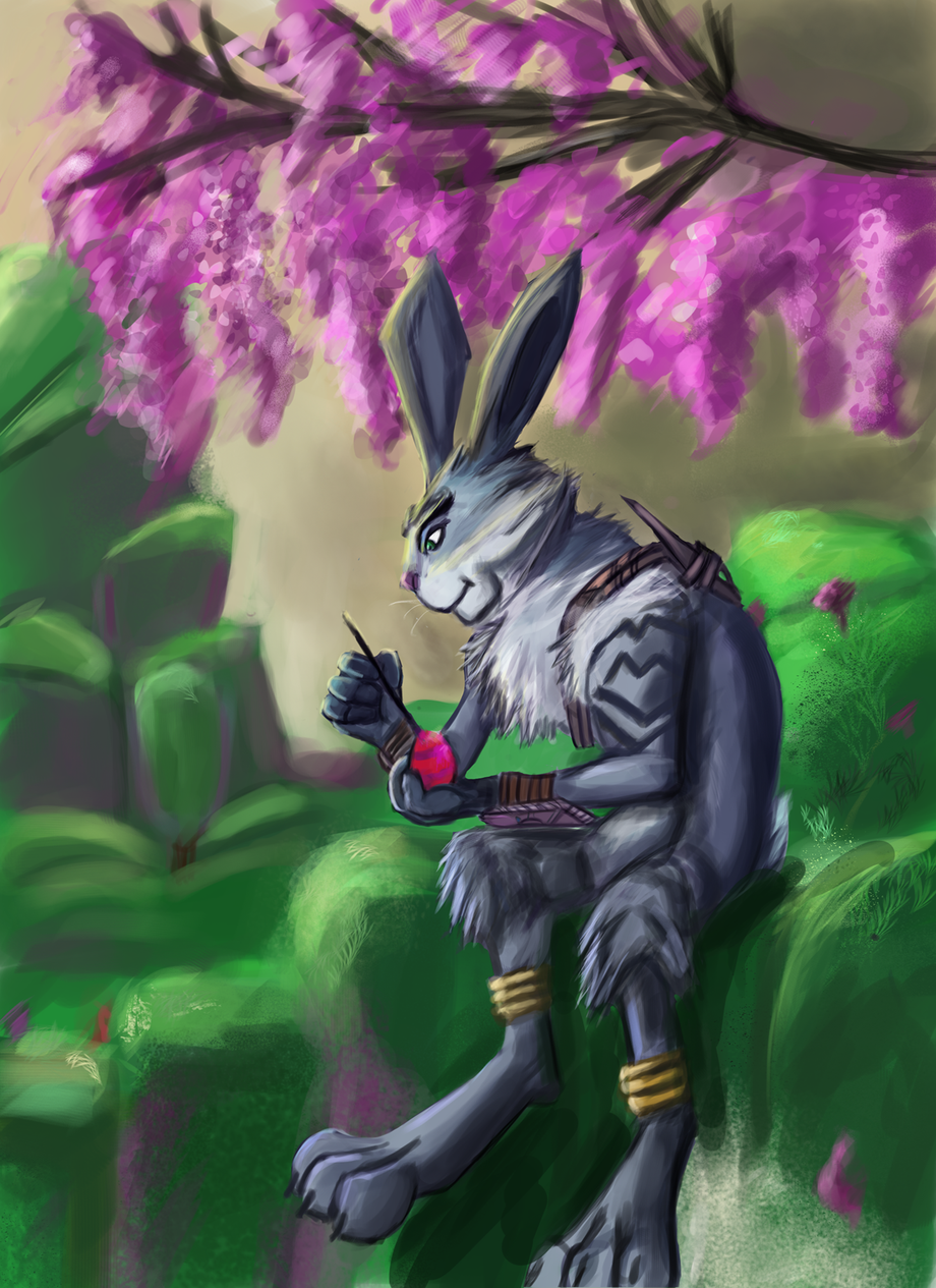 So just saw Rise of the Guardians and wanted to do some painting practice. Took reference but changed the pose so that Mr. Bunny is painting an egg instead, cause I think it's cute, haha :3