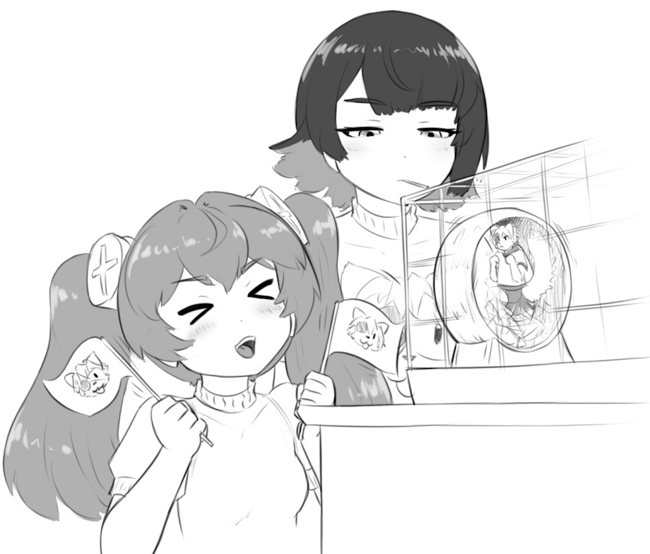 Corin heard about hamster cage passes making you stronger, and decided to get a hamster cage for tiny Lycaon so he'd have a way to get stronger too. he doesn't have the heart to tell her that that isn't how that works, and getting some exercise would be nice anyway, so he plays along. and now Corin is here for moral support!