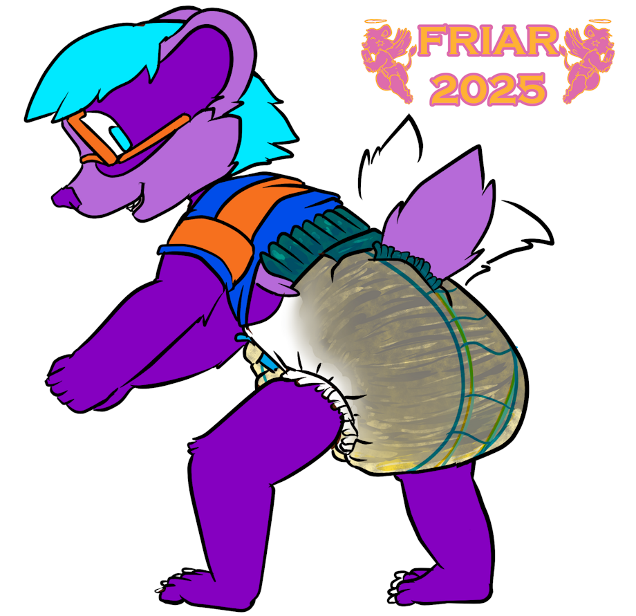 Illustration of Everett the wet and messy diapered badger dancing to some music playing from a cassette player and pooping his diaper while Everett's snake plushie watches. "Poop! At the Playground! Can't catch me when I blort around!"
