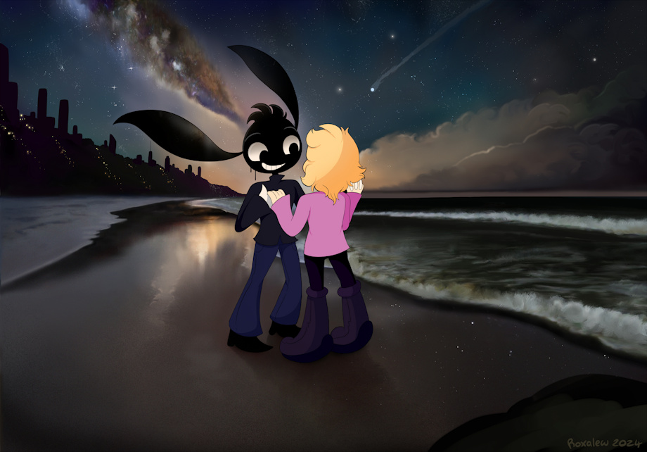 Annie and AJ alone in the starlight .☆: *.✦