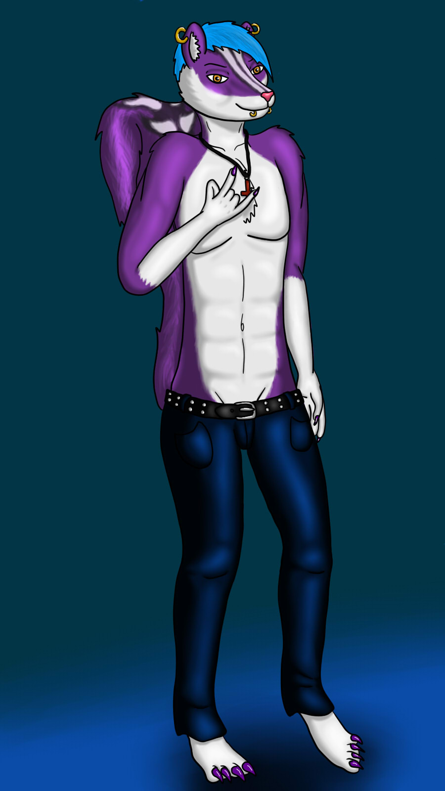 Here's my metal-head skunk Damien sporting some pants (as opposed to nothing at all in my other pics of him X3) and showing the heavy metal hand gesture.