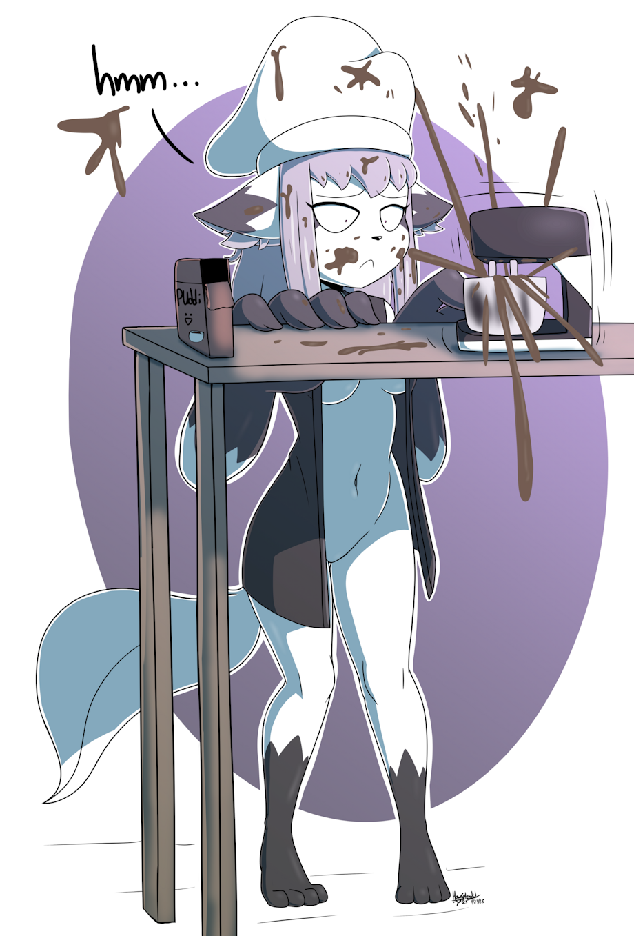 Digital commission for Mayor Haggar of Kibbles trying her best to make pudding. She certainly tried at least.