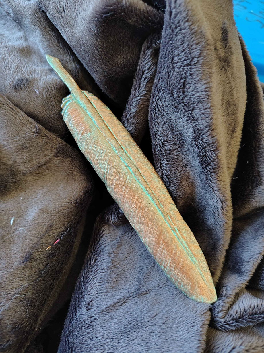 My bestie and current housemate is a really excellent leatherworker, and has given me some spare tools and scraps. The first thing I did was this, just because.