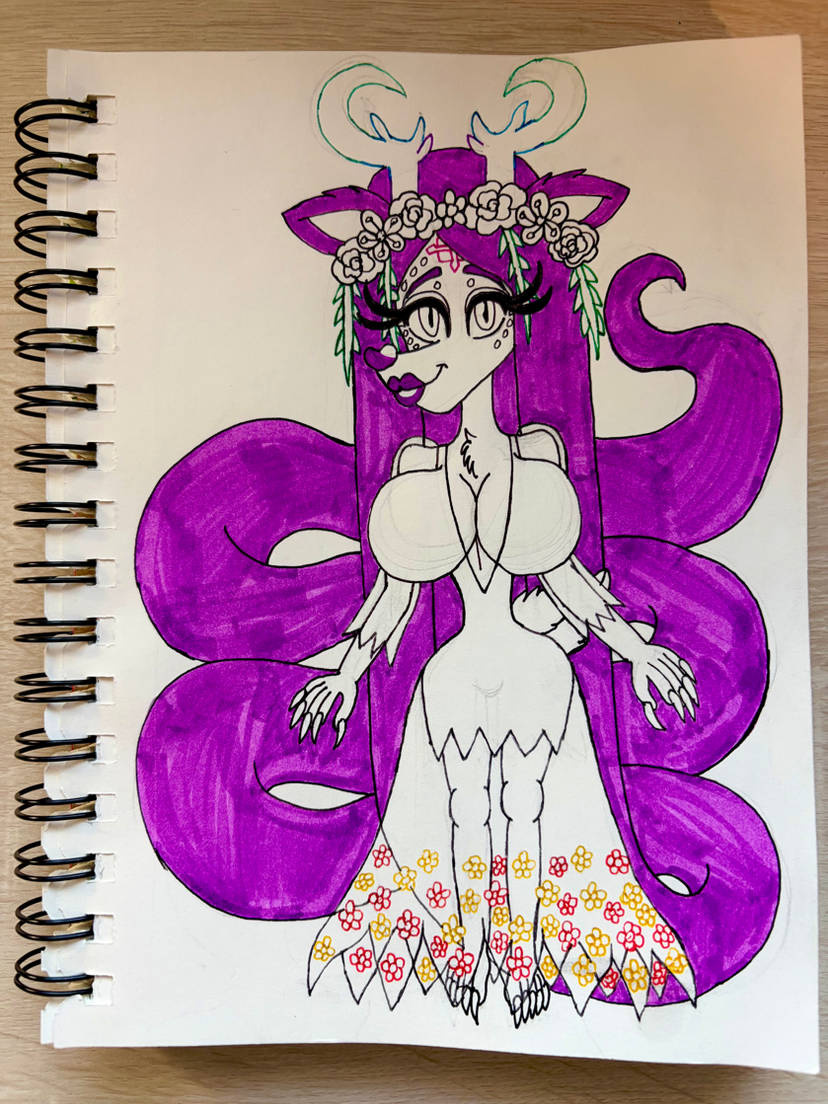 Here’s my gal!! This is before that there was a name Uma. ^^ This is her white dress and I added red and yellow flowers at the bottom of her dress.