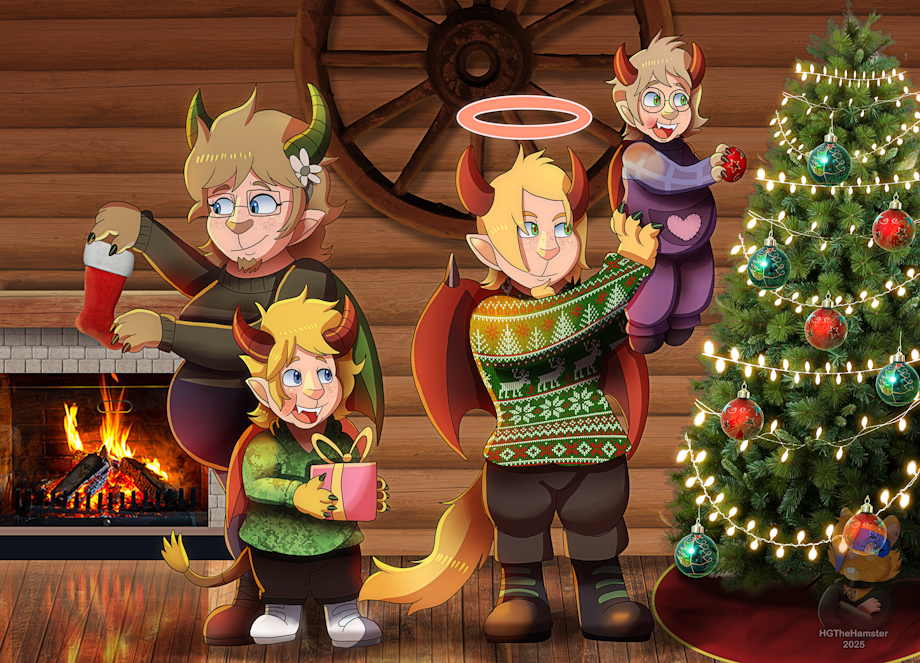 Also a little lore is that my demons don't exactly celebrate Christmas due to them not knowing much about human religion or celebration. So Axel (the one on the far left) actually taught Cassius about Christmas, and it's something I'd really like to write as a one shot (or a multiple chapter) type story. I probably can't do it this year due to time constraints but maybe next year!!!