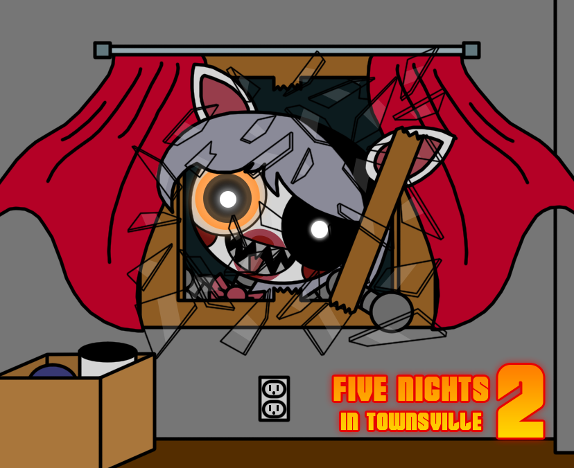 December 5th is at last upon us, and with that comes the release of Five Nights at Freddy's 2 in theaters, so I figured what better way to celebrate than to redraw my favorite scene from the trailer, Mangle breaking through Michael/Vanessa's window but in the style of my Five Nights in Townsville series with bleedman's OC Bell taking center stage.