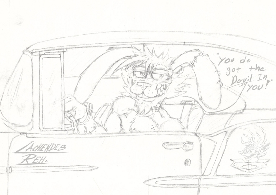 Talking with an old friend about horror movies & wanted to draw the car scene from MaXXXine with my old Bunny sona & car! XD