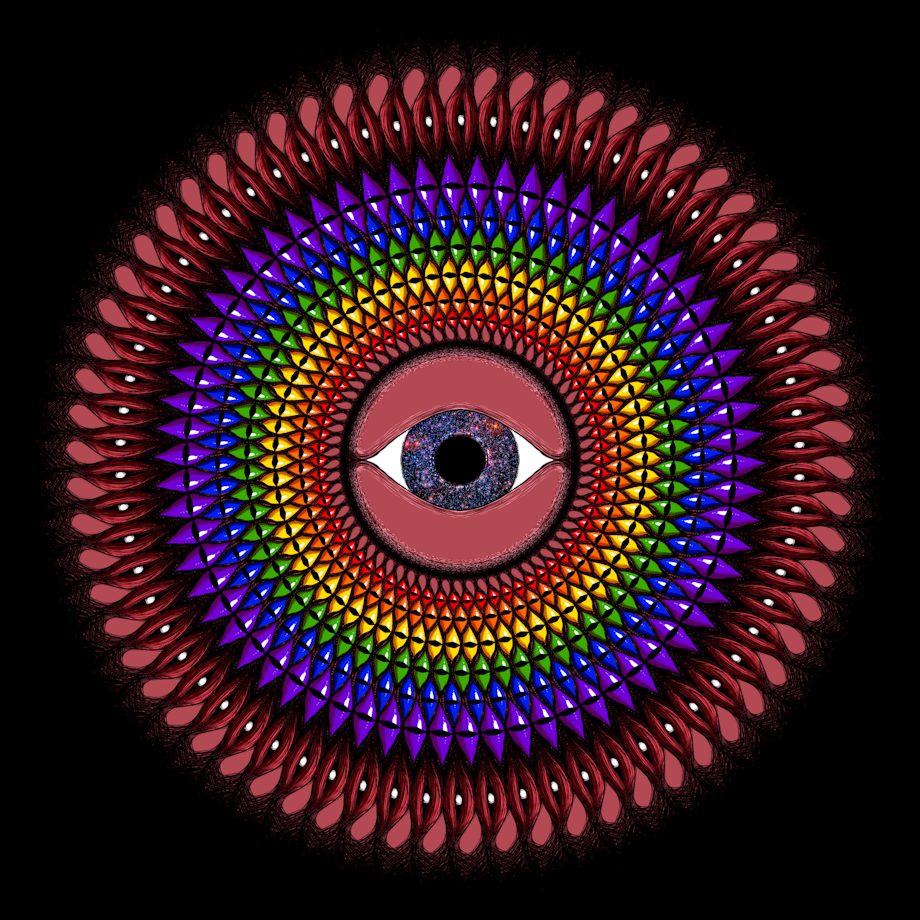 I'd say the one in the middle. The eyes around it can only see in the color their sclera is, but the iris of the one in the middle is every color at once.