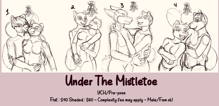 These are priced as follows for BOTH characters: Flat: $40 Shaded: $60 Complexity Fee : +$20 (if both characters are complex this is x2)
