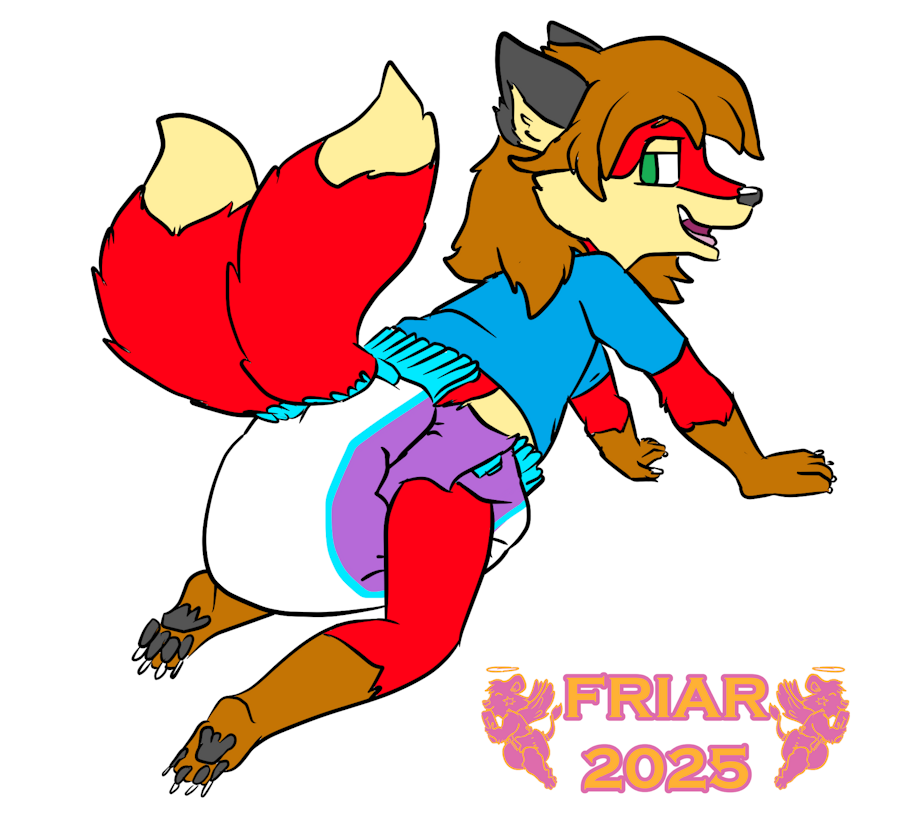 Illustration of Ozzy the wet and messy diapered two tailed fox on all fours on a daycare toddler bed with his fully failed potty training chart to his side. "Think you can match my yuckypants streak?"