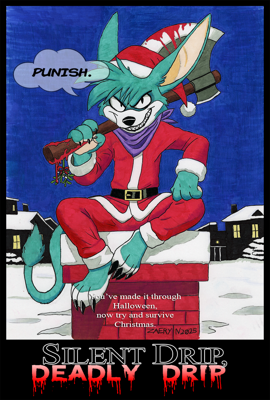 David Hopkins' character, Drip, in a parody of the film Silent Night, Deadly Night. You better watch out. You better not cry. You better not pout. I'm telling you why. Because he'd probably like that. Dripper Claws is coming to town.