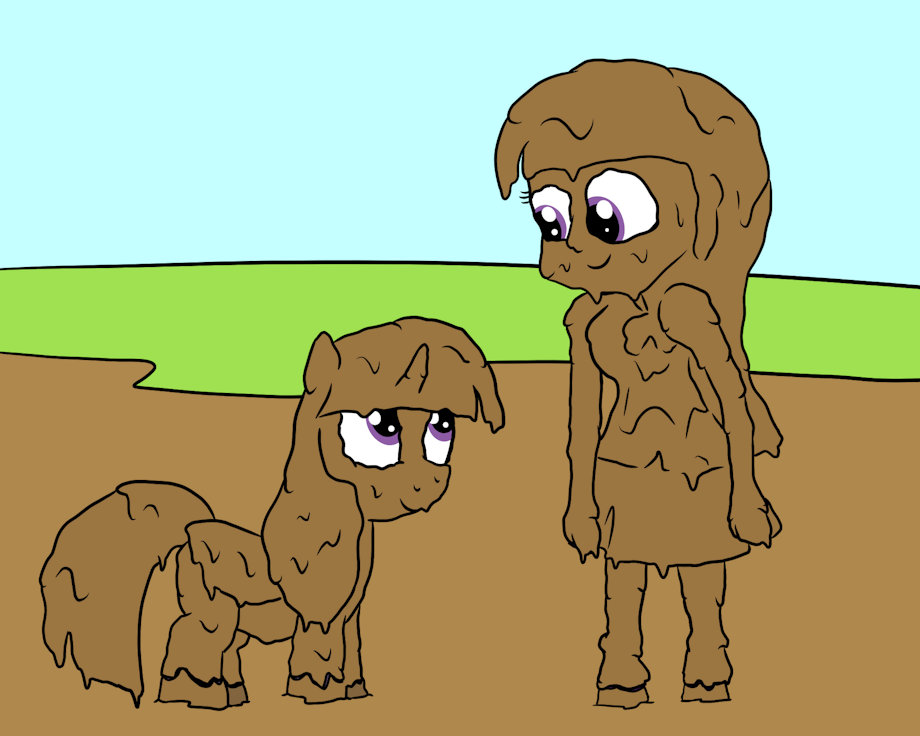 Twilight Sparkle and pony version together in mud.