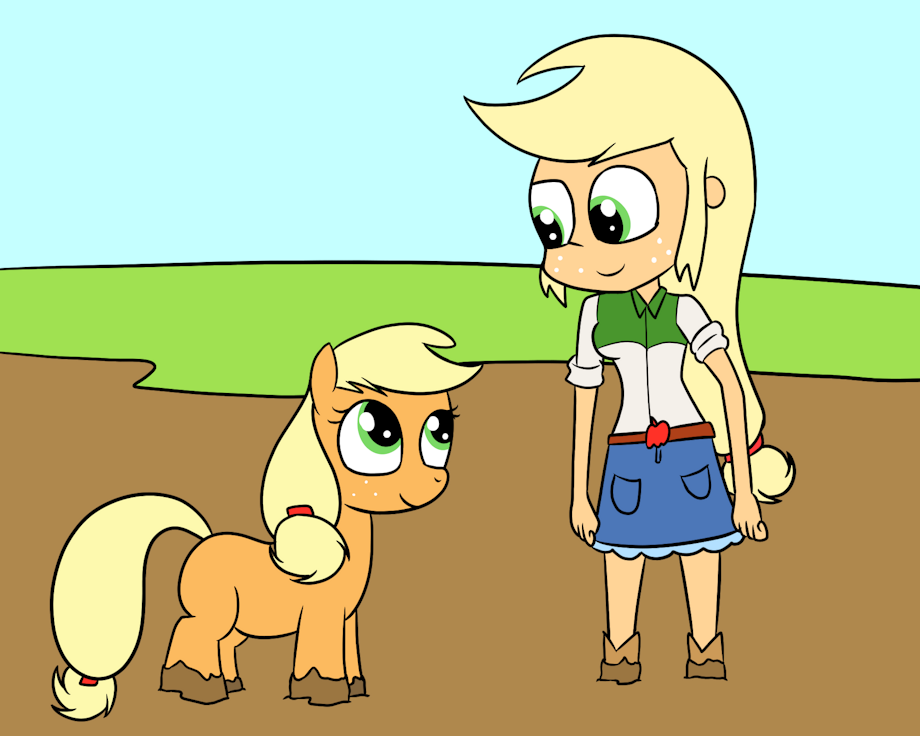 Both Applejack and Equestria girl Applejack having fun in the mud