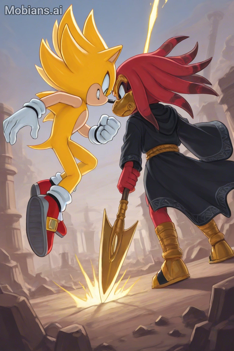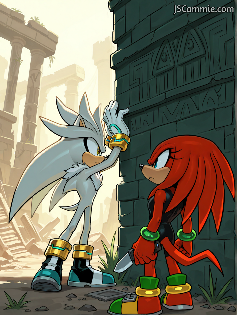 Ch. 1 Act 2 - A morph is on the loose stirring up trouble. GUN thinks it's Kosmo, but the troublemaker is Nova. Here he is in the Mystic Ruins, working on his secret teamup with Jak the echidna of the Nocturnus tribe.