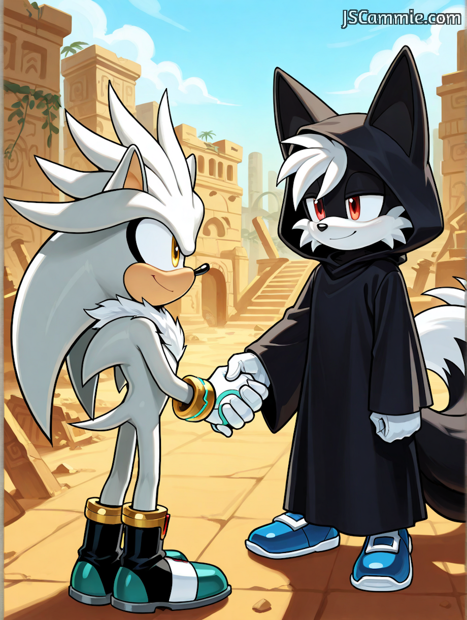 Ch. 1 Act 2 - A morph is on the loose stirring up trouble. GUN thinks it's Kosmo, but the troublemaker is Nova. Here he is in the Mystic Ruins, working on his secret teamup with Jak the echidna of the Nocturnus tribe.