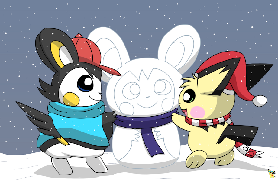 Featuring his Skye Emolga along with Sparks Pichu as they finish building a snowman of Yarn Emolga, with a fitting scarf :3