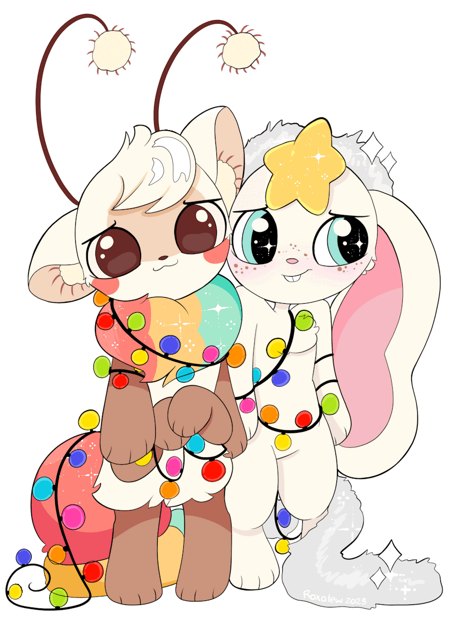 I diverted a little bit from the original idea and thought it would be so cute if they both got tangled up trying to set up the Christmas tree together XD haha.
