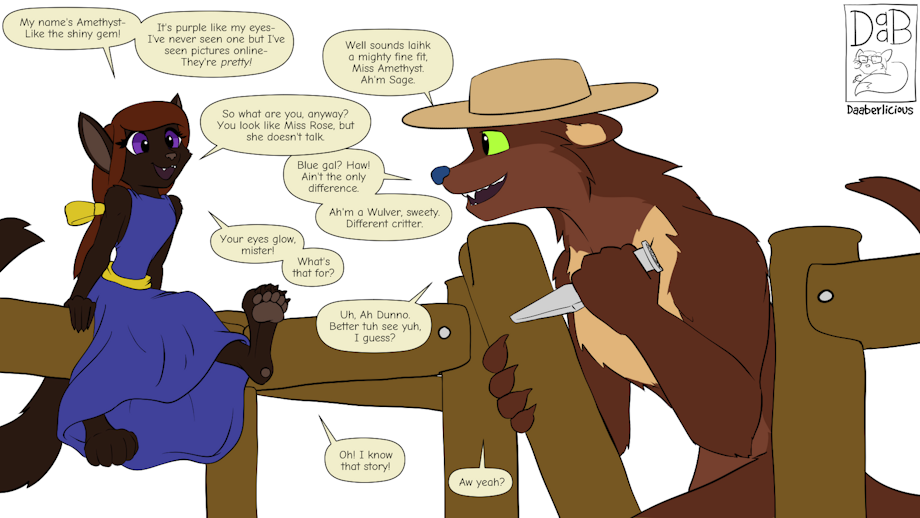 The continued non-canon adventures of Sage, the wulver finally gets a job in The Civil speck helping around the farm.