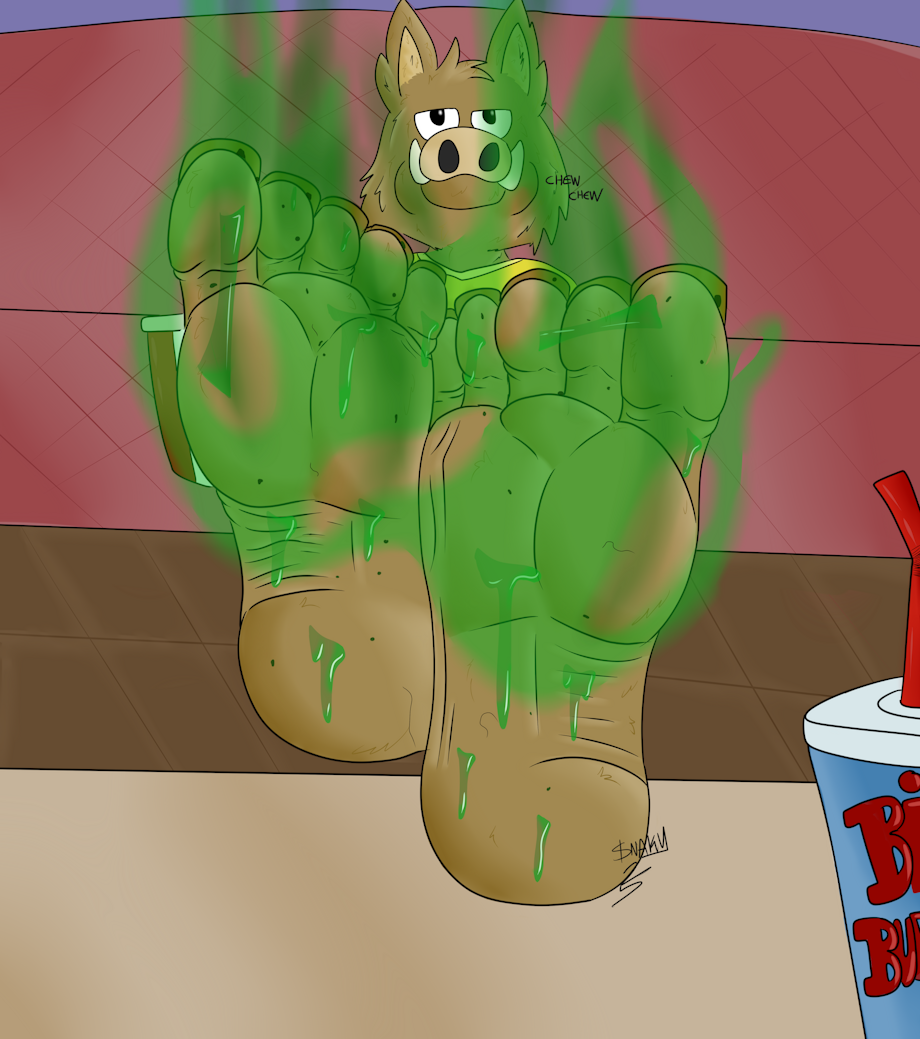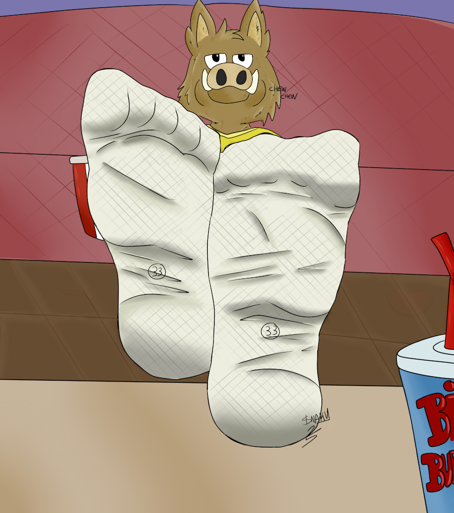 Drawing with many alts as you can imagine, i had a fun time working on Attila's feet, in the show he is rarely shown barefeet, for obvious reasons. He or his brother Napoleon is shown with round, cartoony feet with 3 toes, almost drawn like a line, but they do wear converse looking shoes so it's quite easy to imagine what kind of cute feet would slip inside i made up those ones, the top would have fur, the bottom very thin fur, and the nails are human style. I prefere this over pig styled hooves.