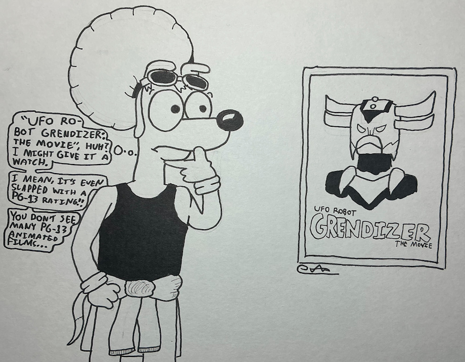 Oscar sees that there is a new movie based on UFO Robot Grendizer playing in theaters right now.