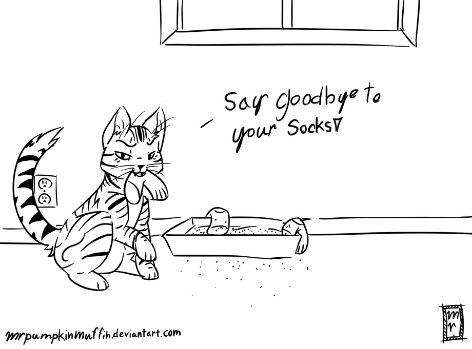 Just thought I would show you all what my cat (Tahoe) does with my socks.. he takes them out of my hamper and drags them into his litter box...