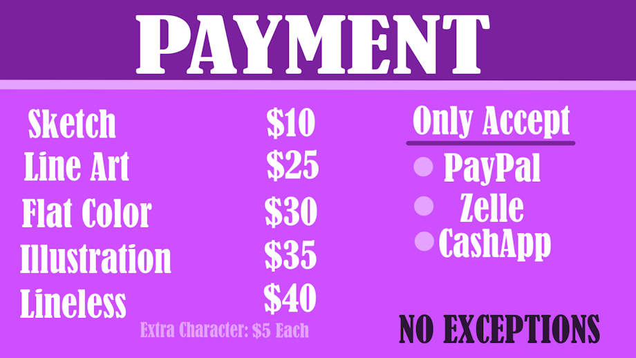 FYI the price will only change depending on commission. Commission can be declined if I know it’s impossible to draw or way too kinky for me. I will never close my commissions and if I did it’s because I am dead xD Other than that thank you for your time and remember to drink water!