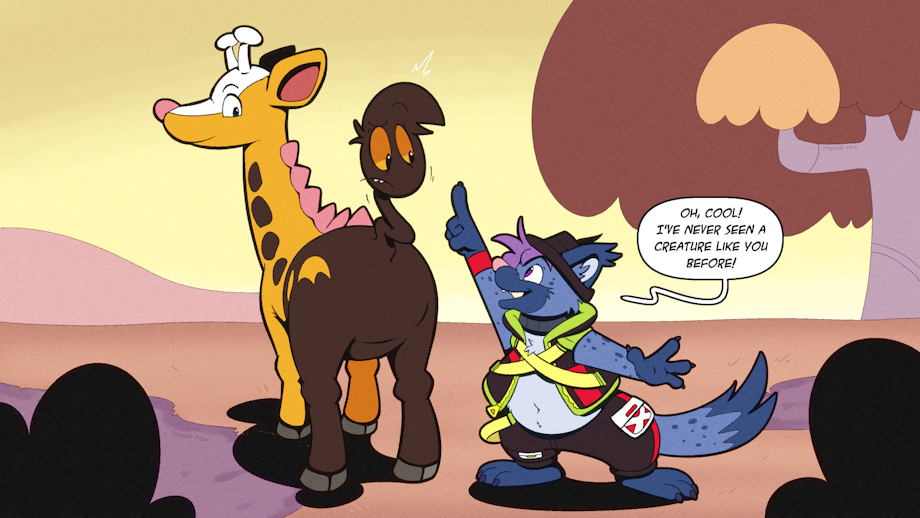 meets a girafarig for the first time and is very curious! I don't want to be poked, though