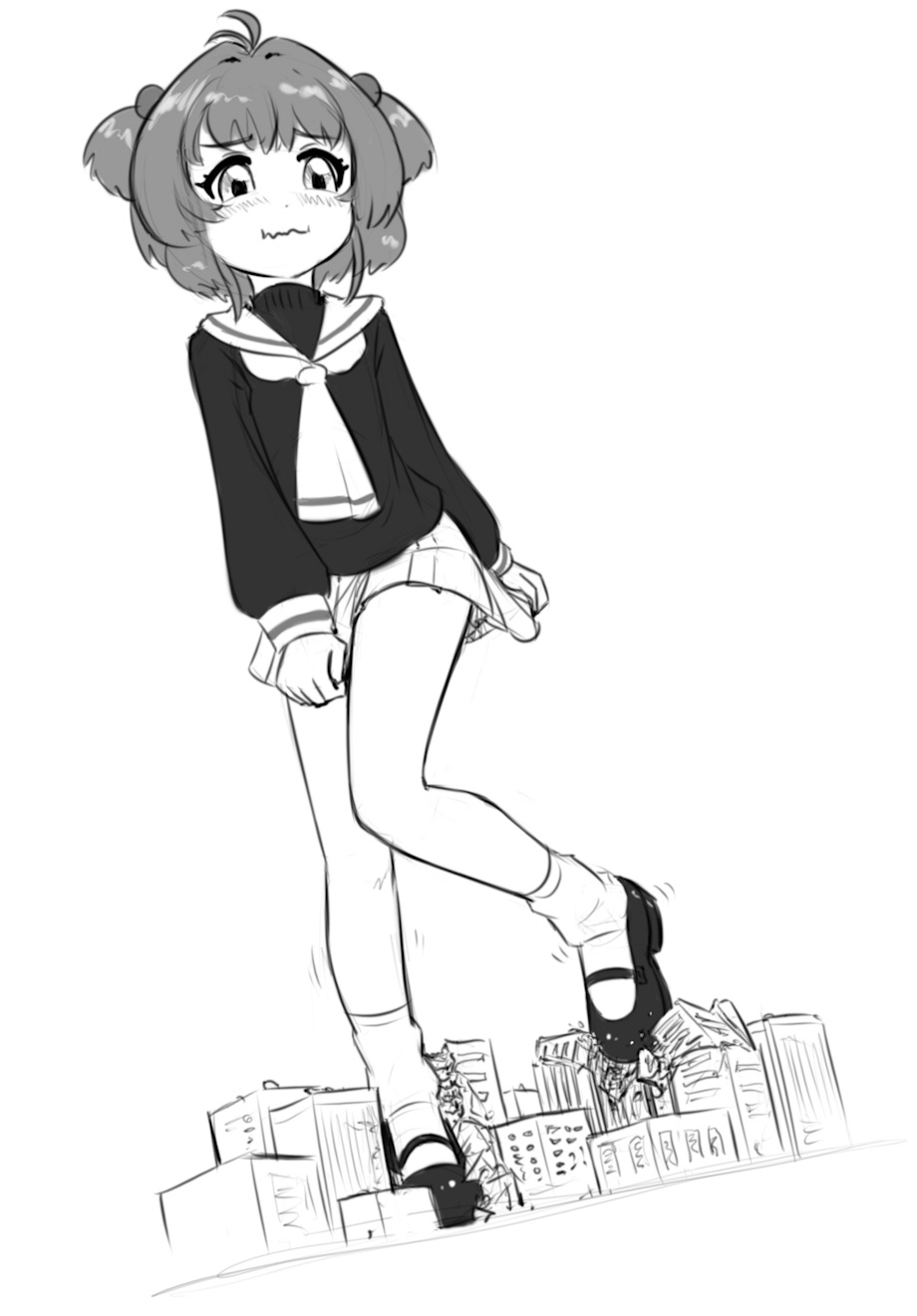 Another scene of shoes versus whole buildings (alongside the Flix from this stream)! Sakura is playing more by the rules here, with her sock sandwiched nervously between them! The little showings of how she's trying to keep still and not wreck too much, when she very much already has, awwwww. Adorably excellent! The tip of her MJ alone causing so much damage as she tries to bring it overhead! She's even trying to cover her pantsu, another precious touch! That face is so cute itself.