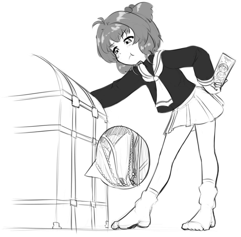 Even "The Little" can be (partially) read on the card as Tomoyo sits on it, her being so small looking compared even to the card itself is great. And of course she's recording such a wonderful vista as well! Sakura's uniform collar looks especially comfy detailed like this as a random note, by the way. Easily my favorite out of the sketch batch, and they were already all fantastic as it is! Great job and composition!