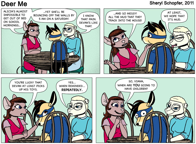 Inspired by pretty much any instance of someone griping about X and then asking someone, "So, when are you going to do/have/get X." Children seem to be common to this.