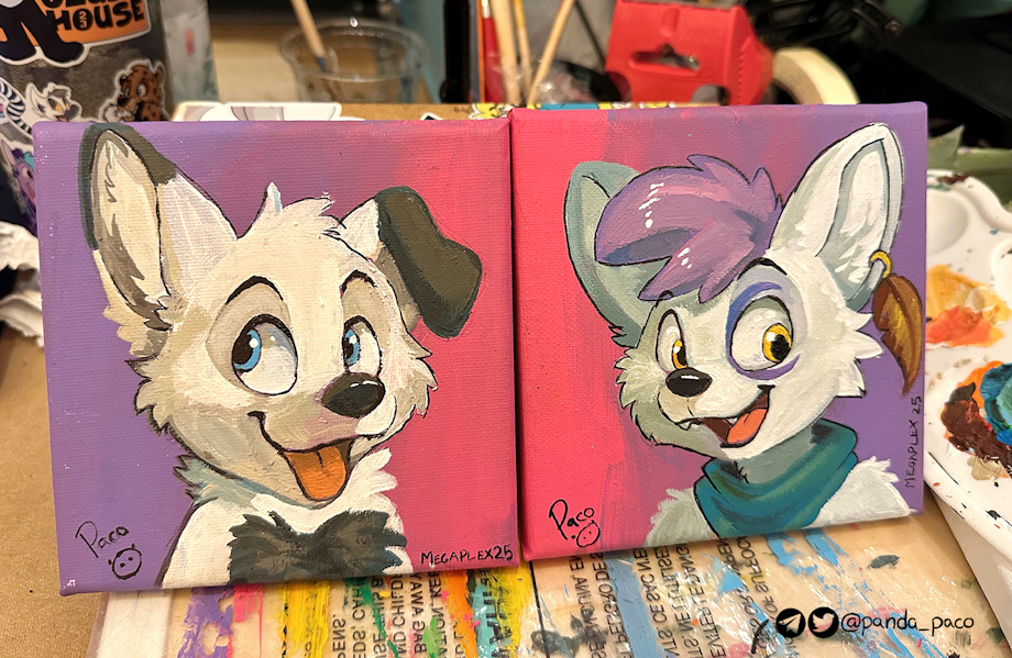 These two cute critters are Husker and Orion. Two acrylic paintings done during Megaplex.