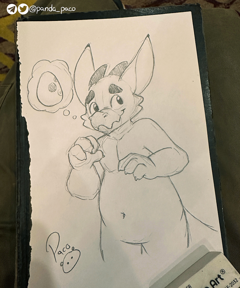 The Kobold thinking on an egg was drawn during a panel at BLFC. I wish I could remember the name of this Kobold!