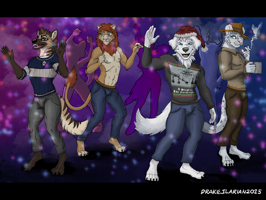 I wanted more Christmas art, and I came up with an idea for a join commission with a few of my friends. Two of the three helped me pay for this, so thanks Shadow and Eraphtas. I appreciate it. I would not have been able to get this without you two. This was drawn by ilarianblackpaw. Thanks man. You did great work.