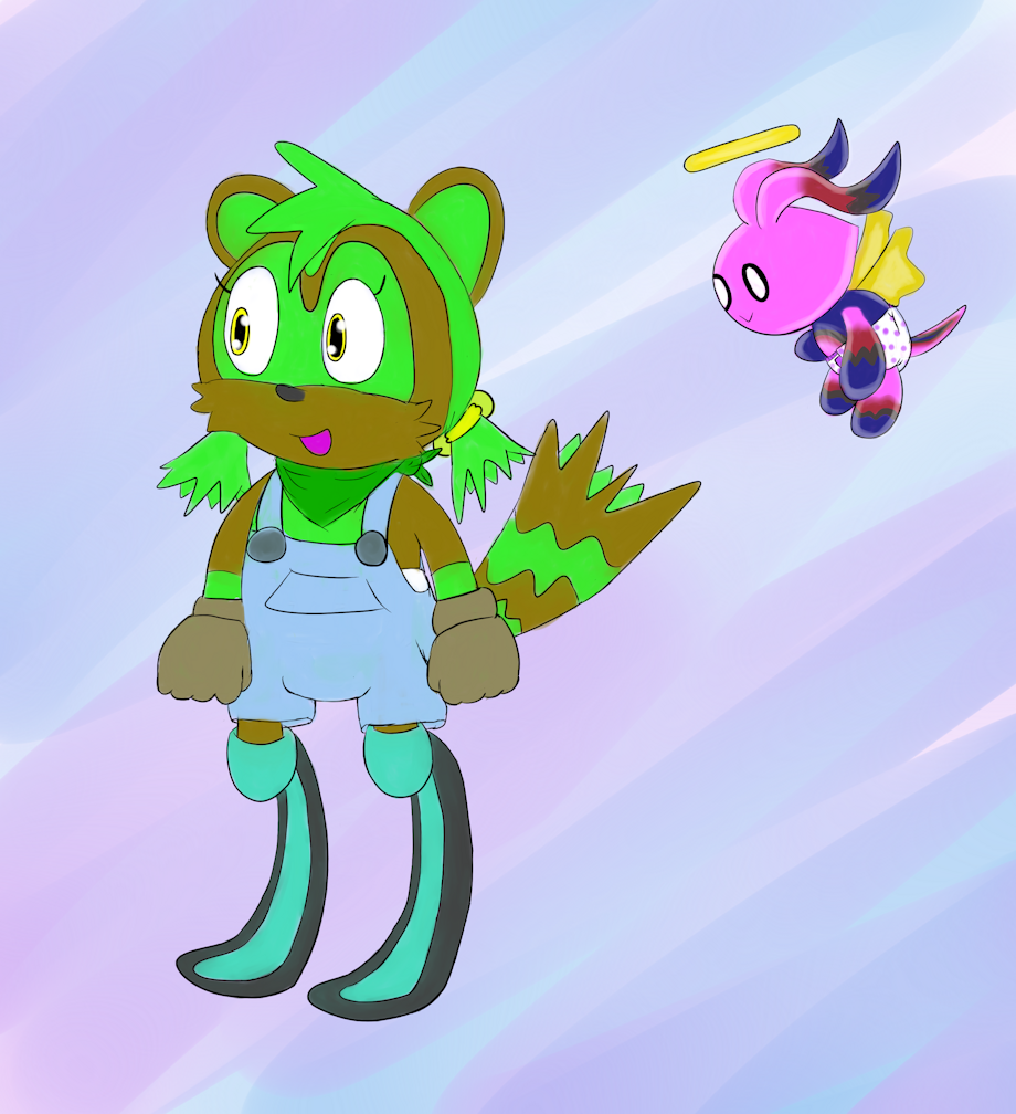 Kiwi is a brown-and-green ferret mobian. Along with their twin sibling Pineapple, they run a few chao gardens, caring for both their own chao as well as those of customers.