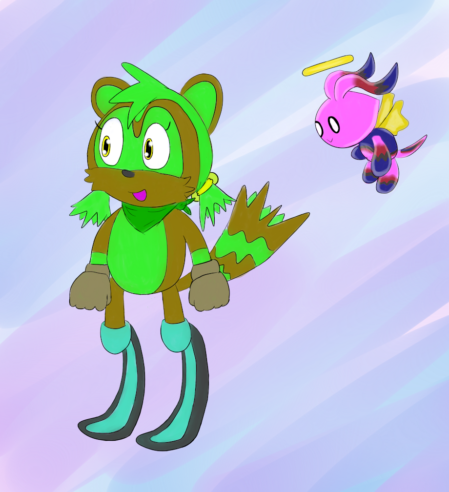 Kiwi is a brown-and-green ferret mobian. Along with their twin sibling Pineapple, they run a few chao gardens, caring for both their own chao as well as those of customers.