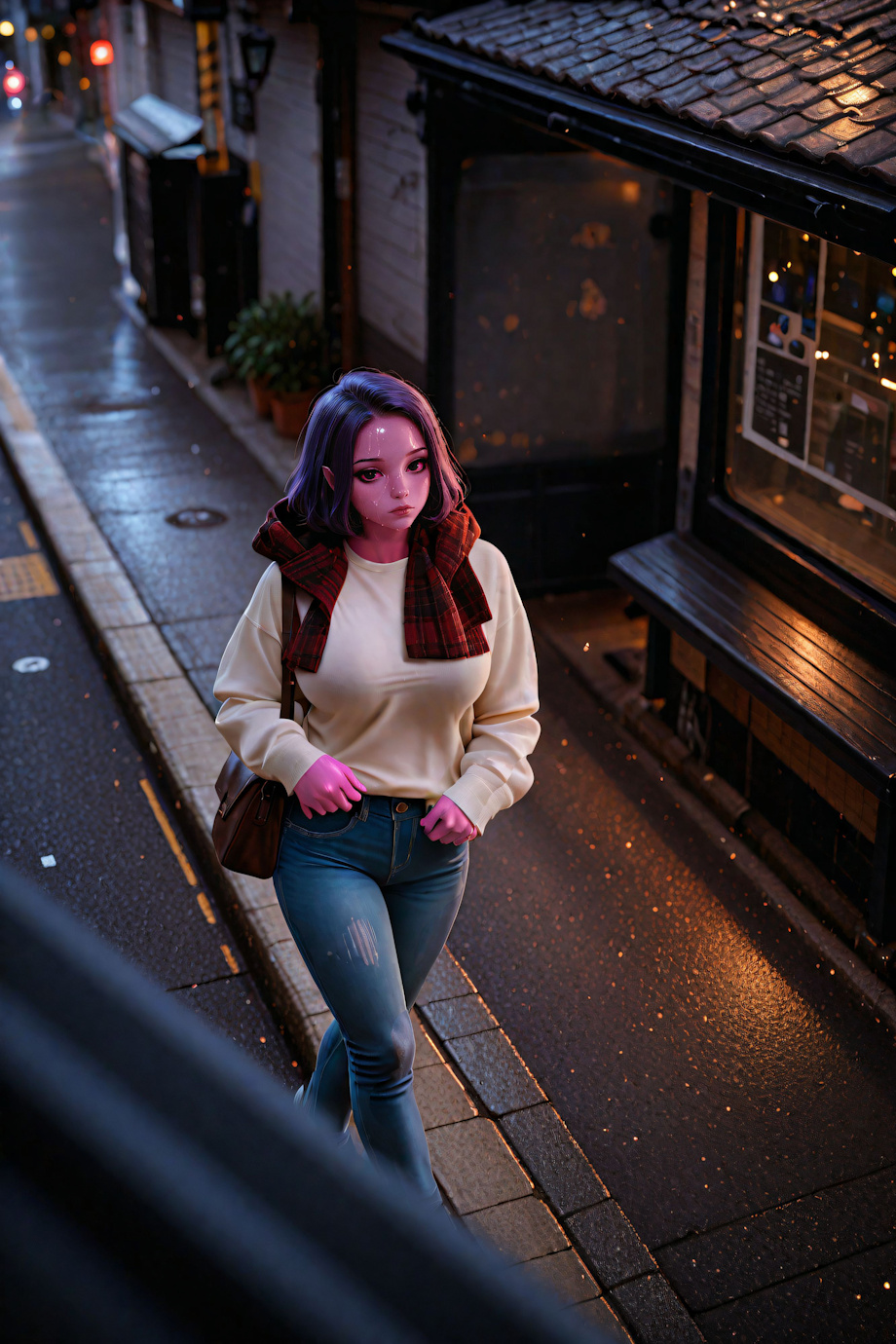 Cast pauses amid the city’s bustle, her thoughts drifting to Arthur and Lash. She can’t help wondering why everything feels so hard for her, while Lash slips into city life as if she’s always belonged. Her attention catches on a figure with pink skin—human at a glance—and she stares before the truth clicks. That’s not a human at all.