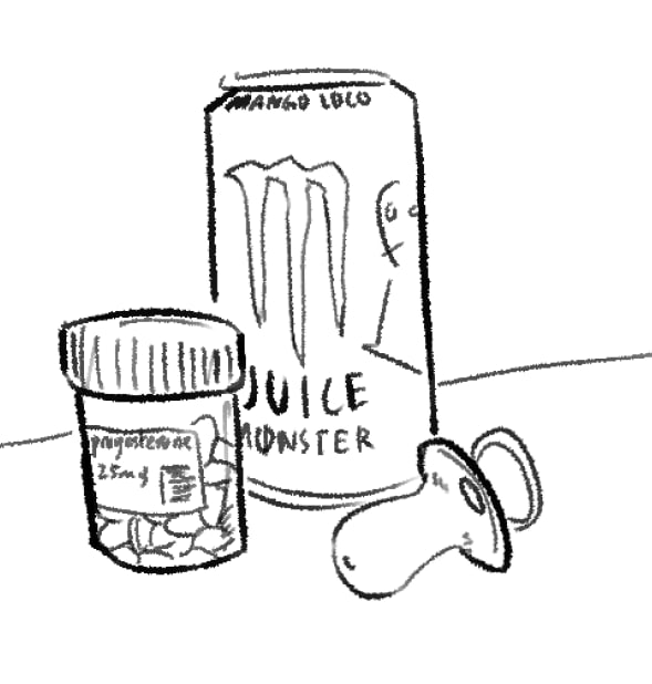Need (i remplace the testosterone with estrogen and the monster with apple juice :3c)