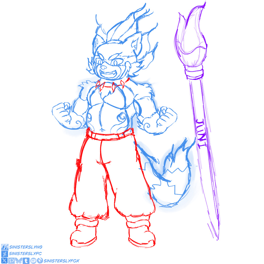 Juni finally has an evolved form. I'm still working out the specifics of how his form works but at the very least it boosts his paint and water-based abilities, with a bit of reality bending.