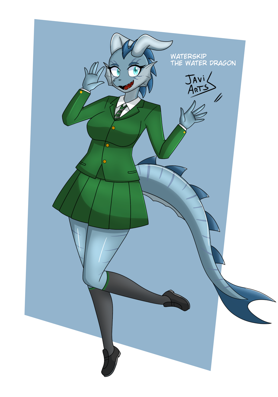 One of my friends from discord wanted I draw his wingless dragon girl with college (or institute) uniform owor